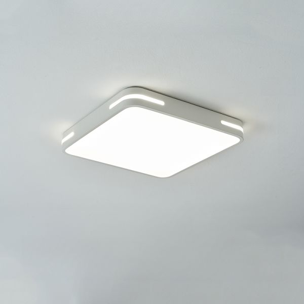 Minimalist LED Flush Mount Ceiling Light, Ultra-Slim Low Profile Fixture with Side Accents - White 110V-120V 30 cm Square