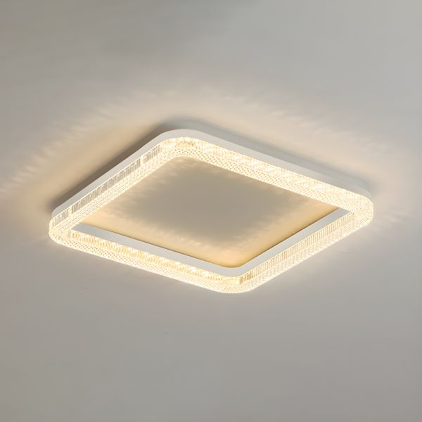 Contemporary Luxe LED Flush Mount Ceiling Light, Low Profile Fixture with Faceted Acrylic Rim - White White Light 110V-120V Square