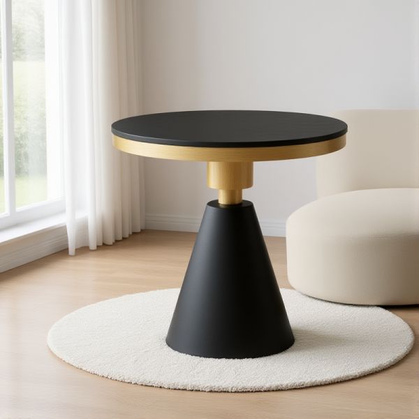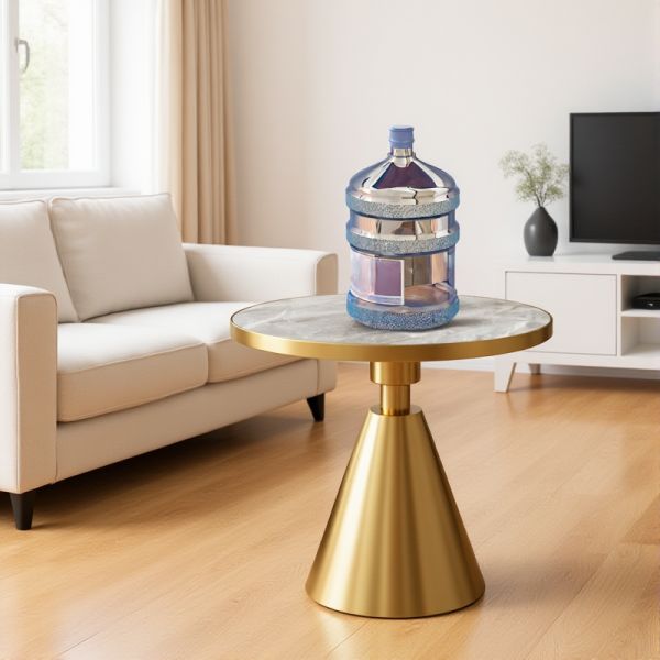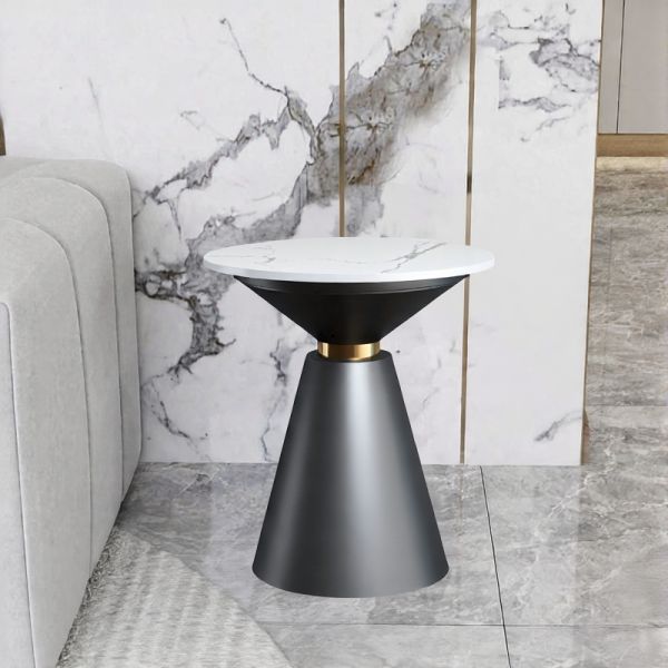 Round Black Marble-Style End Table with Gold Rim and Cone Base, Modern Accent Side Table for Living - White 20"L x 20"W x 23"H