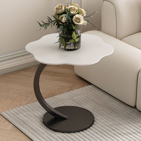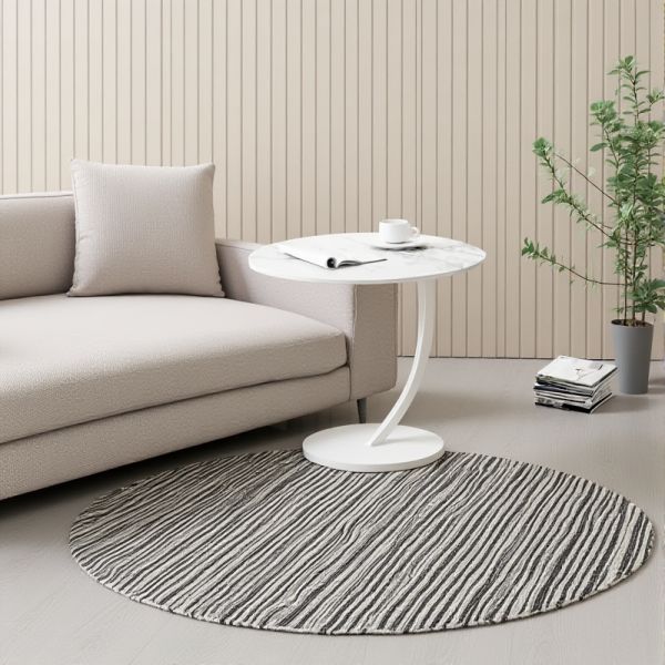 Modern Round Faux Marble Side Table with Curved Pedestal and White Base for Living Room - White White