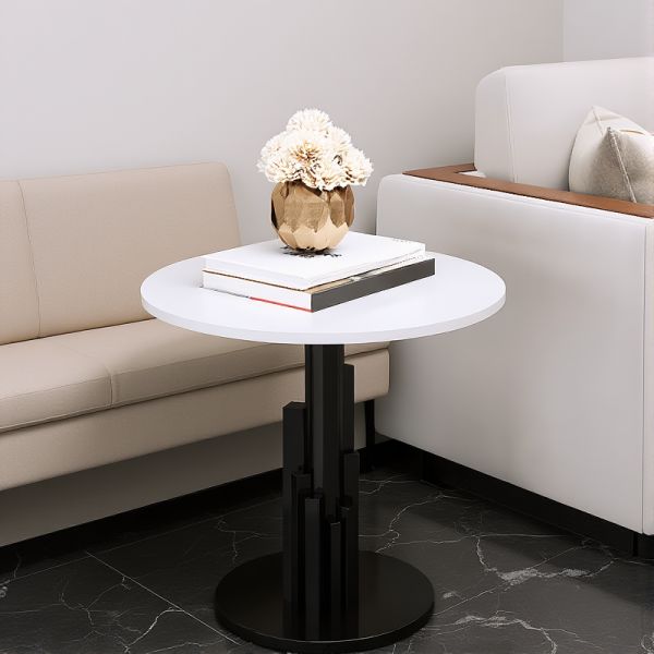 Modern Round End Table, White Top & Black Metal Pedestal, Accent Side Table for Living Room - Black Matte White