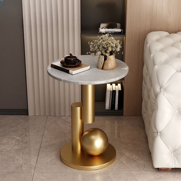 Round Faux Marble End Table with Sculptural Metal Base, Modern Accent Side Table for Living Room - Gold Gray