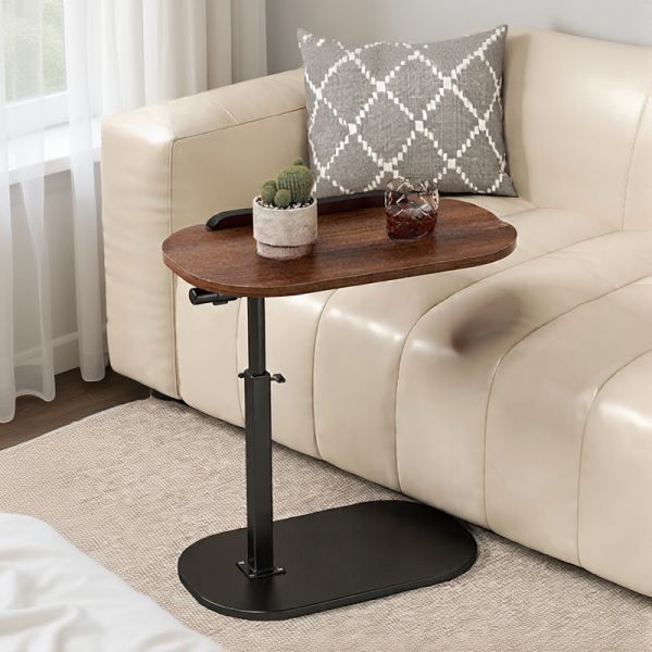 Modern Walnut Wood Sofa Side Table, Small Snack/End Table with Metal Base, Rounded Rectangle Top - Black