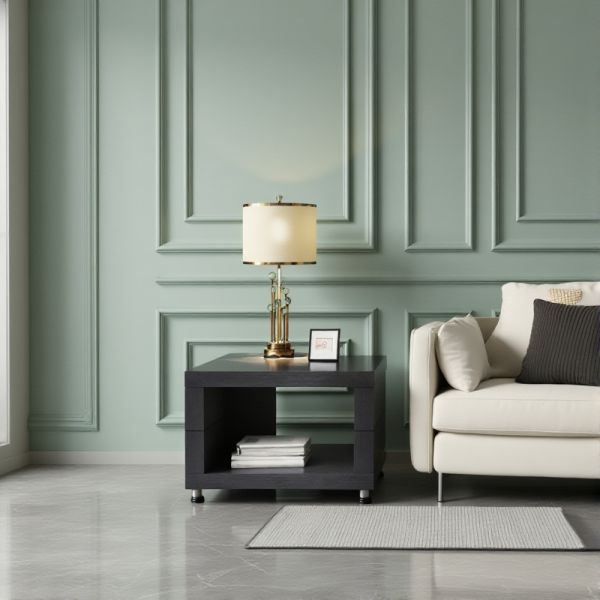 Modern Square Wood End Table with Open Storage Shelf, Living Room Side Table - 24"L x 24"W x 18"H Black