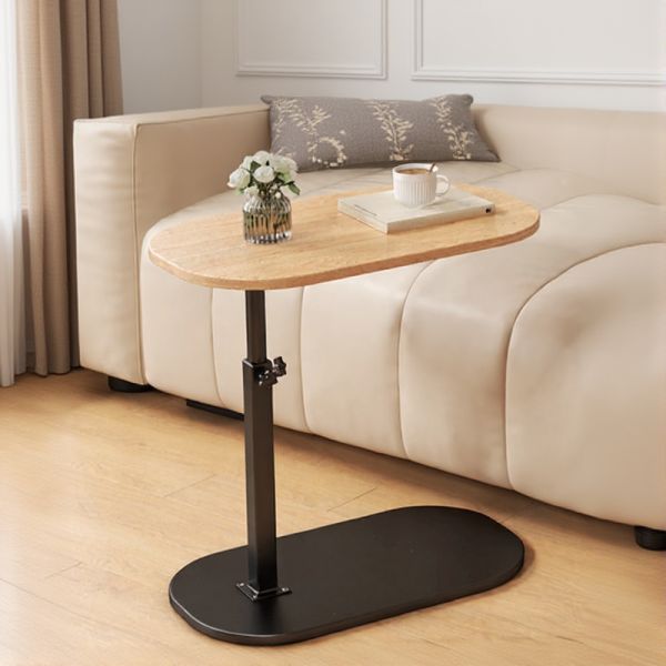 Adjustable Height Wood Top End Table with Steel Pedestal Base, Laptop/Snack Table for Sofa & Bed - Wood/Black Lift