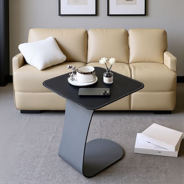 Slim C-Shaped Sofa End Table, Steel Base Side Table for Reading, Snacks & Laptops - Black