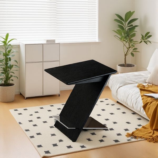 Modern Z-Shape Side Table with Magazine Storage, Compact Wood End Table for Living Room Sofa - Black
