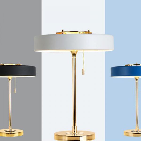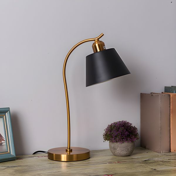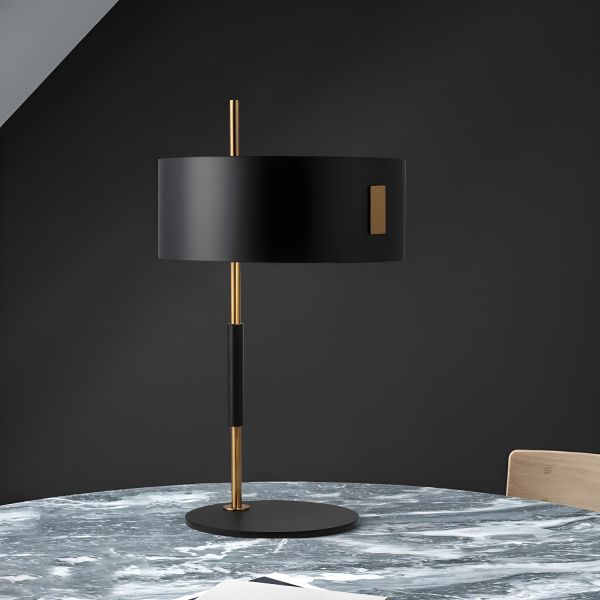 Industrial Minimalist Metal Table Lamp with Brass Accents and Opaque Drum Shade - 110V-120V Black