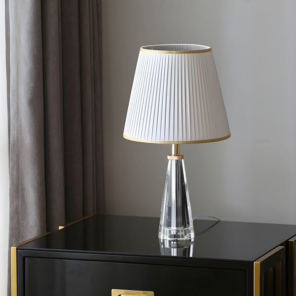Elegant Faceted Crystal Bedside Lamp with Gold Accents and Pleated Shade - 110V-120V Grey