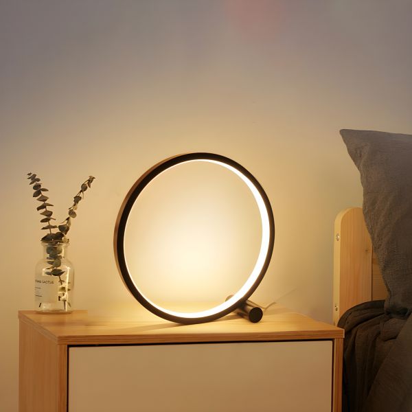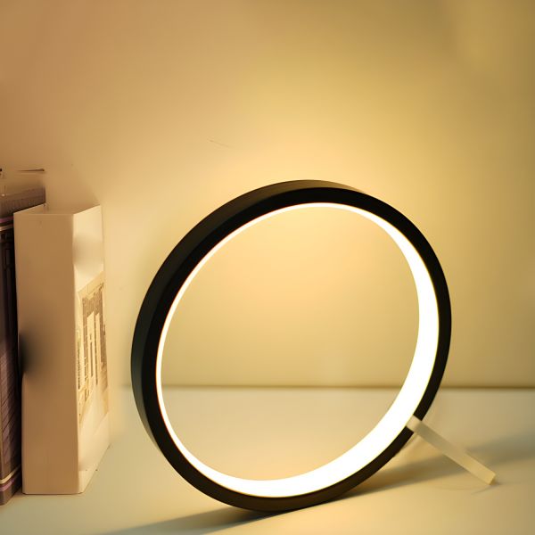 Minimalist LED Ring Table Lamp, Geometric Circular Bedside Light with Weighted Metal Base - 110V-120V Black 25 cm White Light