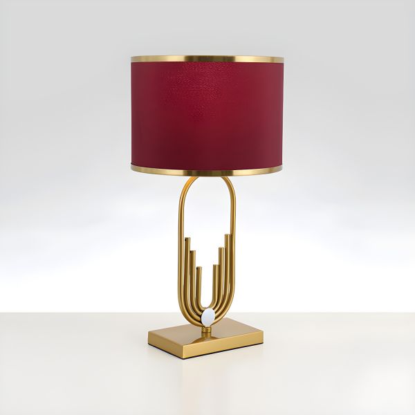 Geometric Luxe Solid Brass Table Lamp with Smoke Glass Base and Fabric Drum Shade - 110V-120V