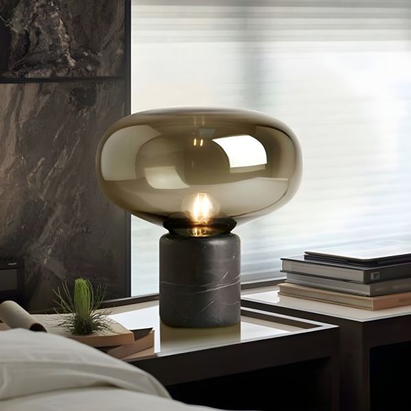 Sculptural Luxe Marble Table Lamp with Tinted Glass Mushroom Shade - 110V-120V Cognac