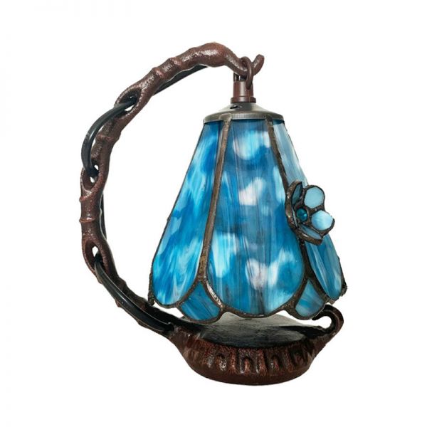 1 Light Night Light Mission Style Blue Glass Flower Table Lamp with Curving Arm
