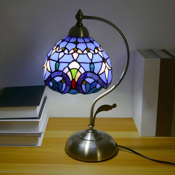 Round Shape Glass Desk Light Tiffany Style Table Lamp for Living Room