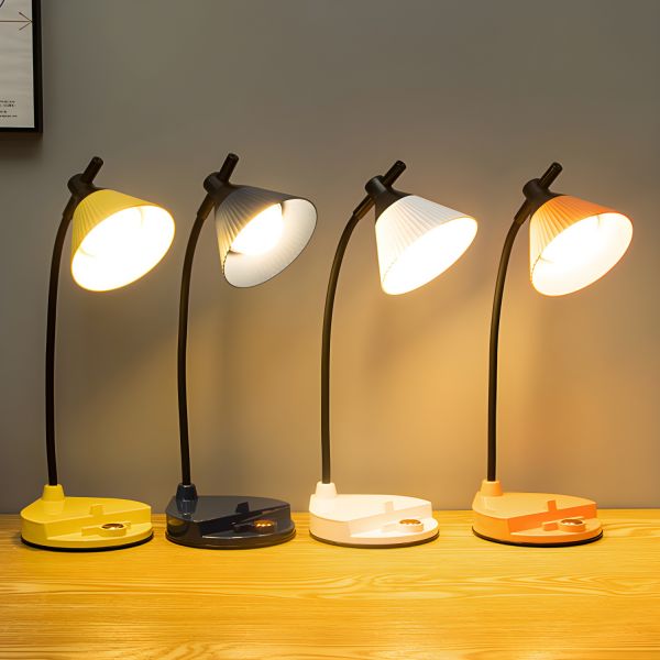 Cone Shade Plastic Reading Lamp Macaron Rechargeable LED Night Table Light