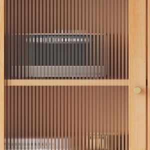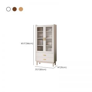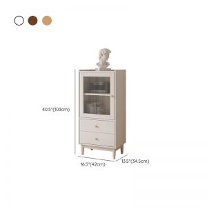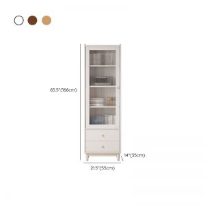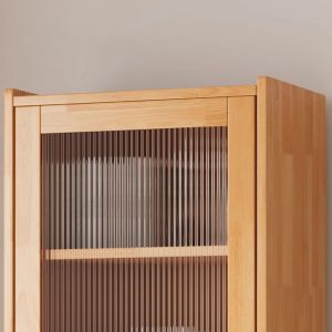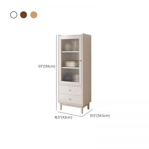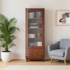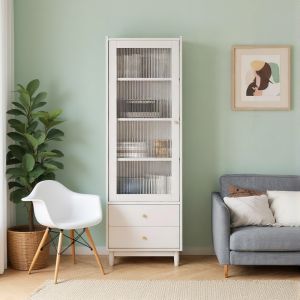 Tall Solid Wood Display Cabinet with Fluted Glass Door, 3 Shelves & 2 Drawers, Slim Storage