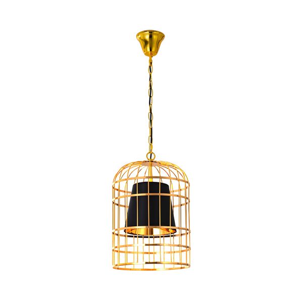 Metal Elongated Birdcage Chandelier Retro 12" Wide 1 Bulb Restaurant Ceiling Pendant with Black Cone Shade Inside