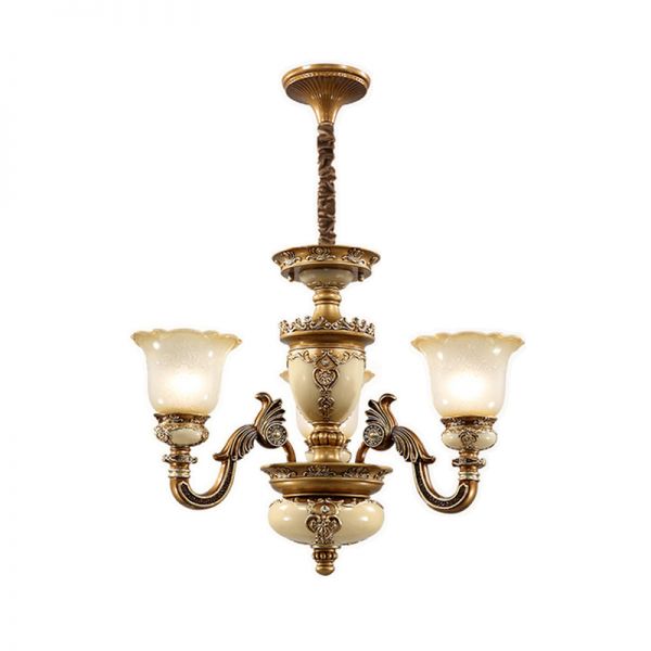 Vintage Baroque Resin Chandelier, Hand-Painted Antique Gold Finish with Frosted Glass Shades - 3 110V-120V
