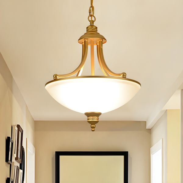 Transitional Ceiling Light with Frosted Glass Bowl & Curved Metal Arms - 110V-120V Gold