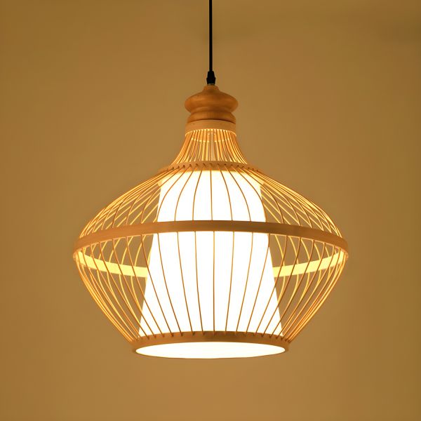 Hand-Woven Bamboo Pendant Light Zen-Inspired Rattan Hanging Ceiling Lamp for Kitchen Island - 110V-120V Wood Color Urn