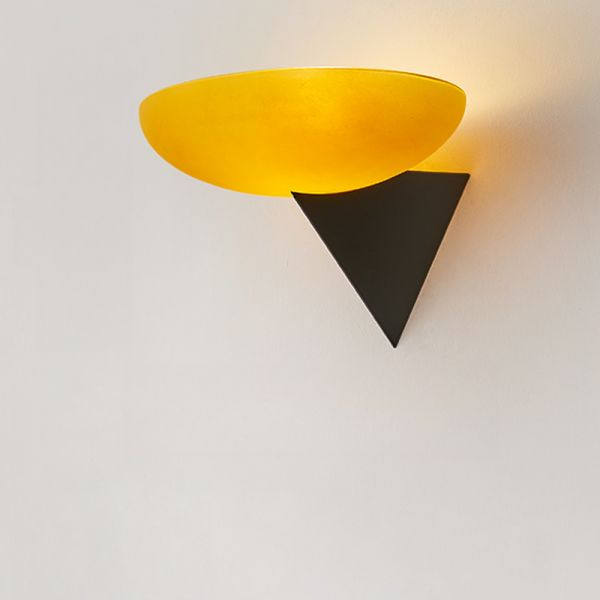 Yellow Wall Sconce with Upward Glass Shade in Black, Geometric Design for Residential Use with LED/Incandescent/Fluorescent Light, 110V-120V