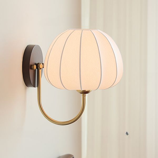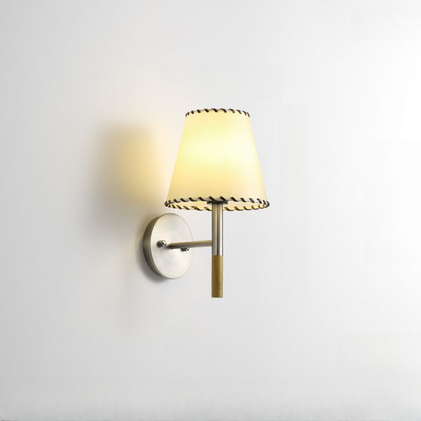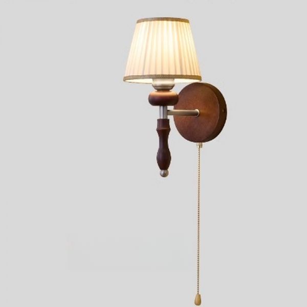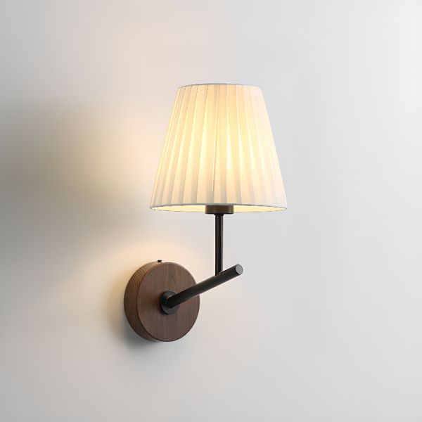 Cloth Shade Wall Light with Upward Iron Fixture, Golden Light, and White Enclosure, 110V-120V, Walnut/ Black