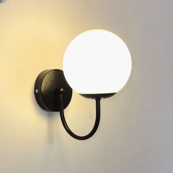 Wall Light with Up Glass Ball Shade Black Iron 1 Light for Master Bedroom, 110V-120V, Wall Control