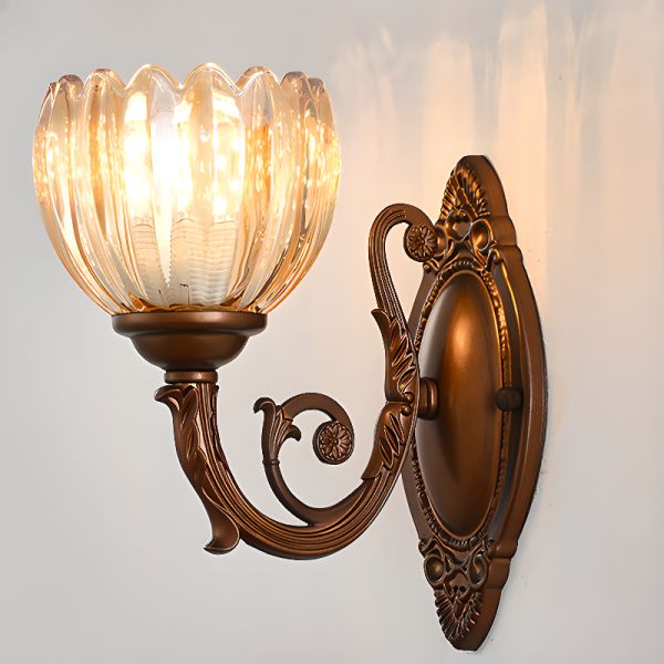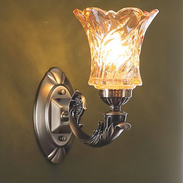 Brown Wall Sconce with Up Shade Direction, Transparent Glass Indoor Wall Lamp with Vitreous Shade for Residential Use, 110V-120V