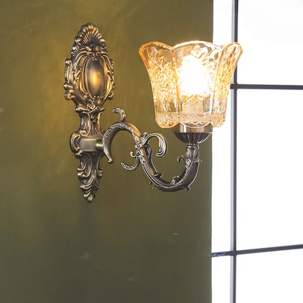 Bronze Wall Light with Up Vitreous Armed Sconce Shade Cover, 1 Light Minimalist Style, 110V-120V