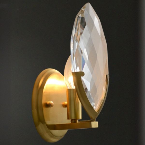 Wall Light in Rock Crystal Shade Design Featuring Upward Clear Crystal Lampshade with Translucent Antique Brass, 110V-120V