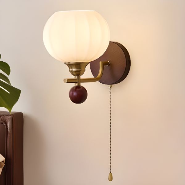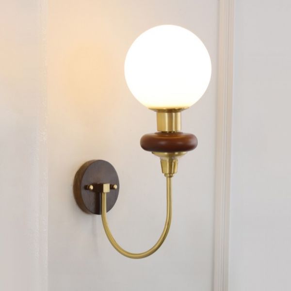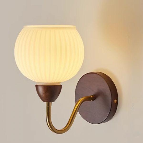 Wall Light with Up Shade Direction, Ash Wood Wall Lamp Featuring Chalk Glass Shade, Hardwired, 110V-120V, Walnut
