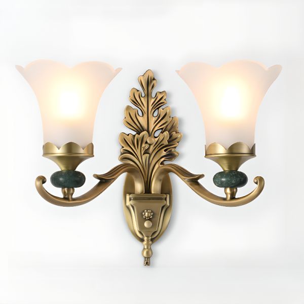 Wall Light with Glassy Subdued Light 2 Lights Gilded Glass Shade in Simple Style, 110V-120V