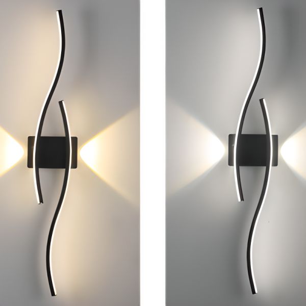 Contemporary LED Wall Sconce, Linear Wave Art Light Fixture for Hallway & Bedroom Ambiance - 110V-120V Black Warm Light