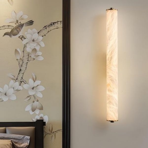 Luxe Alabaster Style Wall Sconce, Vertical LED Tube Light for Hallway and Vanity - 110V-120V 16" Coppery