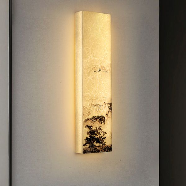 Zen Landscape Wall Sconce, Rectangular Faux Stone Art Fixture with Ambient Glow for Hallway - 110V-120V Warm Light
