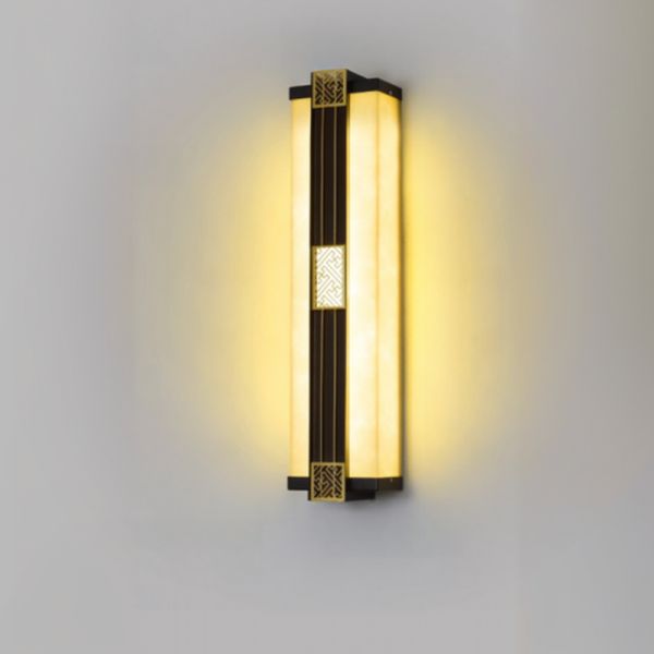 Zen Geometric LED Wall Sconce, Faux Alabaster Shade with Gold Accents for Entryway - 110V-120V Warm Light 57 cm