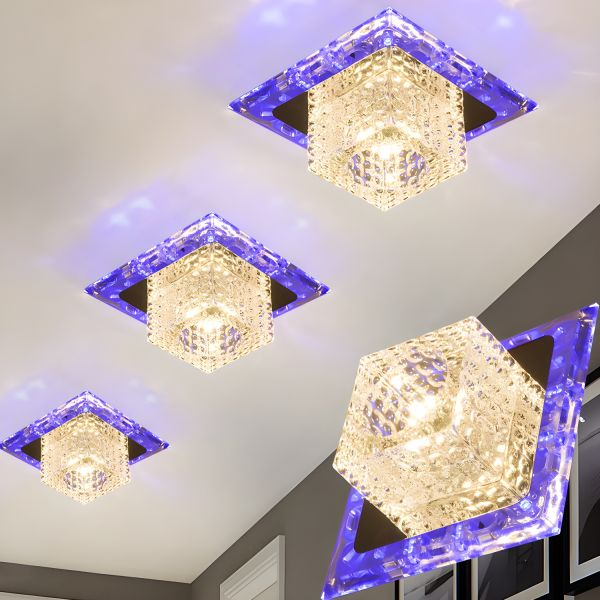 Modern K9 Crystal Ceiling Light, Square LED Hallway Fixture with Chrome Base for Entryway Foyer - Chrome 110V-120V Warm Light