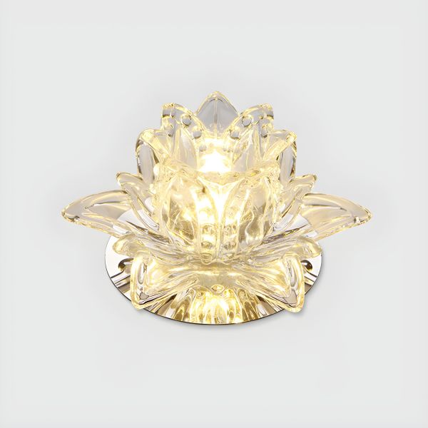 Elegant Crystal Lotus Flush Mount Ceiling Light, Compact LED Flower Fixture for Hallway Entryway - Clear 110V-120V Warm Light