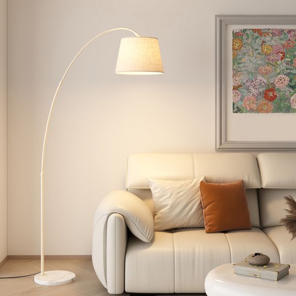 Minimalist Arched Floor Lamp with Heavy Marble Base for Living Room Reading - 110V-120V Cream Fabric
