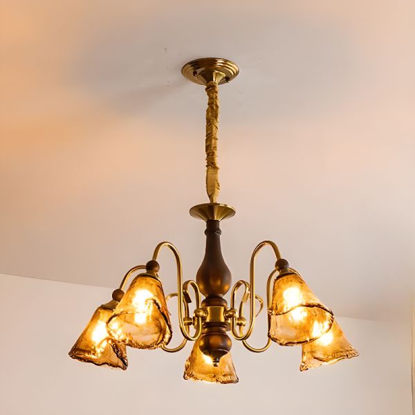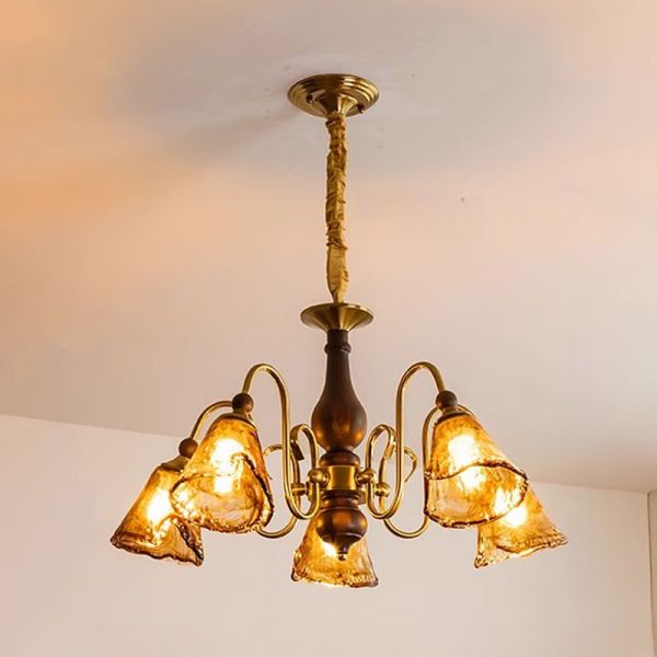 Brown Hanging Light with Adjustable Height, Clear Glass Shade, 5 Lights, Shade Fixture, Chain Mounting for Residential Use, 110V-120V