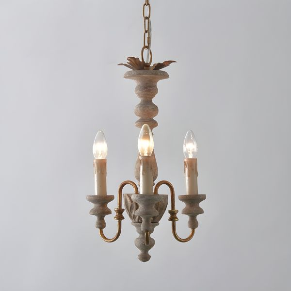 French Country 3-Light Wood Chandelier, Rustic Distressed Finish for Dining Room - 110V-120V Distressed Wood
